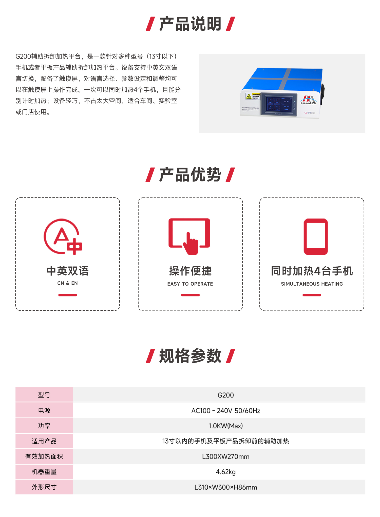 G200 輔助拆卸加熱平臺